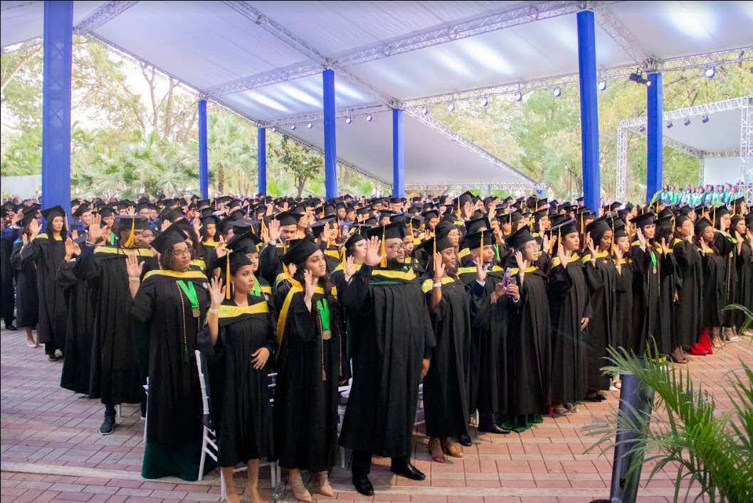 SAN PEDRO DE MACORÍS.- La Universidad Central del Este (UCE) entregó a la sociedad dominicana 399 nuevos profesionales en distintas áreas del saber, en la celebración de su Centésima Cuadragésima Quinta Investidura de Grado y Técnico Superior, en el Campus José Hazim Azar, en San Pedro de Macorís.