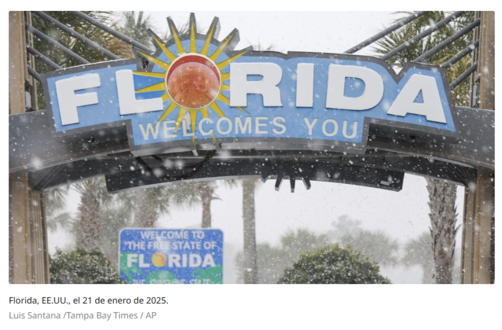 FLORIDA.- Esta semana, la nieve provocó el cierre de autopistas e interrupciones aéreas y ferroviarias, y obligó a cancelar las clases en los colegios de zonas no preparadas para afrontar las nevadas.