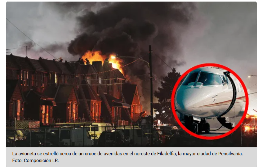 FILADELFIA, Estados Unidos.- Un avión pequeño se estrelló este viernes por la tarde en una zona residencial de Filadelfia (Estados Unidos), causando una explosión y al menos seis muertos.