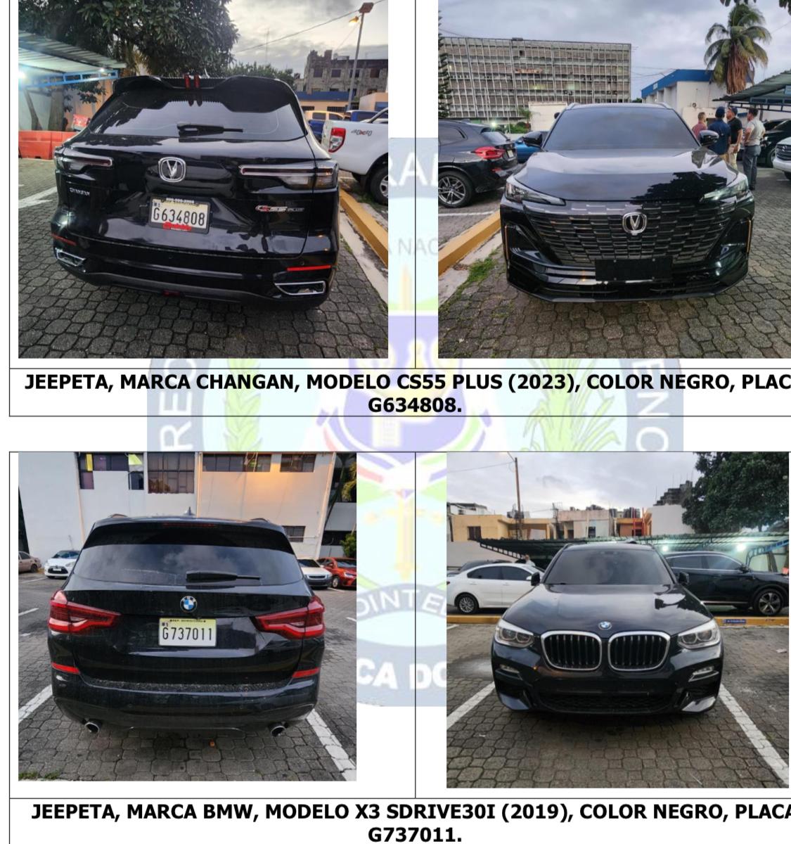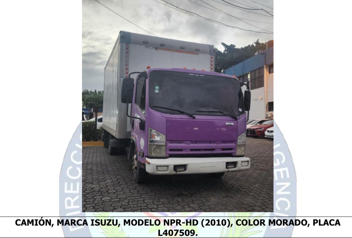 Entre las evidencias ocupadas se encuentran una pistola Glock calibre 9mm con su cargador y 14 cápsulas, nueve celulares de diferentes marcas, un bulto con documentos relacionados con actividades ilícitas, RD$6,000.00 en efectivo, una sevillana y tres vehículos: un camión Isuzu NPR-HD (2010), color morado, placa L407509; una jeepeta BMW X3 SDRIVE30I (2019), color negro, placa G737011, y una jeepeta Changan CS55 PLUS (2023), color negro, placa G634808.