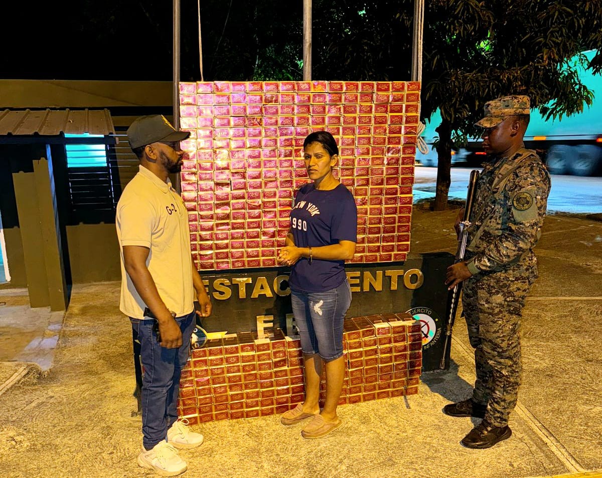 La mujer, identificada como Netlisa Vincent , sin cédula, fue interceptada por miembros del Ejército de servicio en el puesto de chequeo Las Caobas, en una jeepeta Honda, modelo CRV, color gris, placa G586761, conducido por la mujer, en la cual llevaba oculto en la parte trasera del referido vehículo, 83,000 unidades de cigarrillos ilícitos marca Capital.
