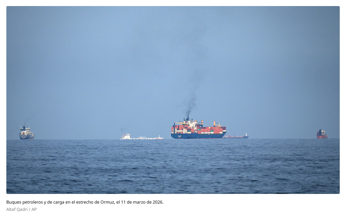 Asimismo, Irán bloqueó casi por completo el estrecho de Ormuz, ruta marítima por donde circula alrededor de 20 % de todo el petróleo y gas que se comercia en el mundo, lo que ha disparado los precios de los combustibles.