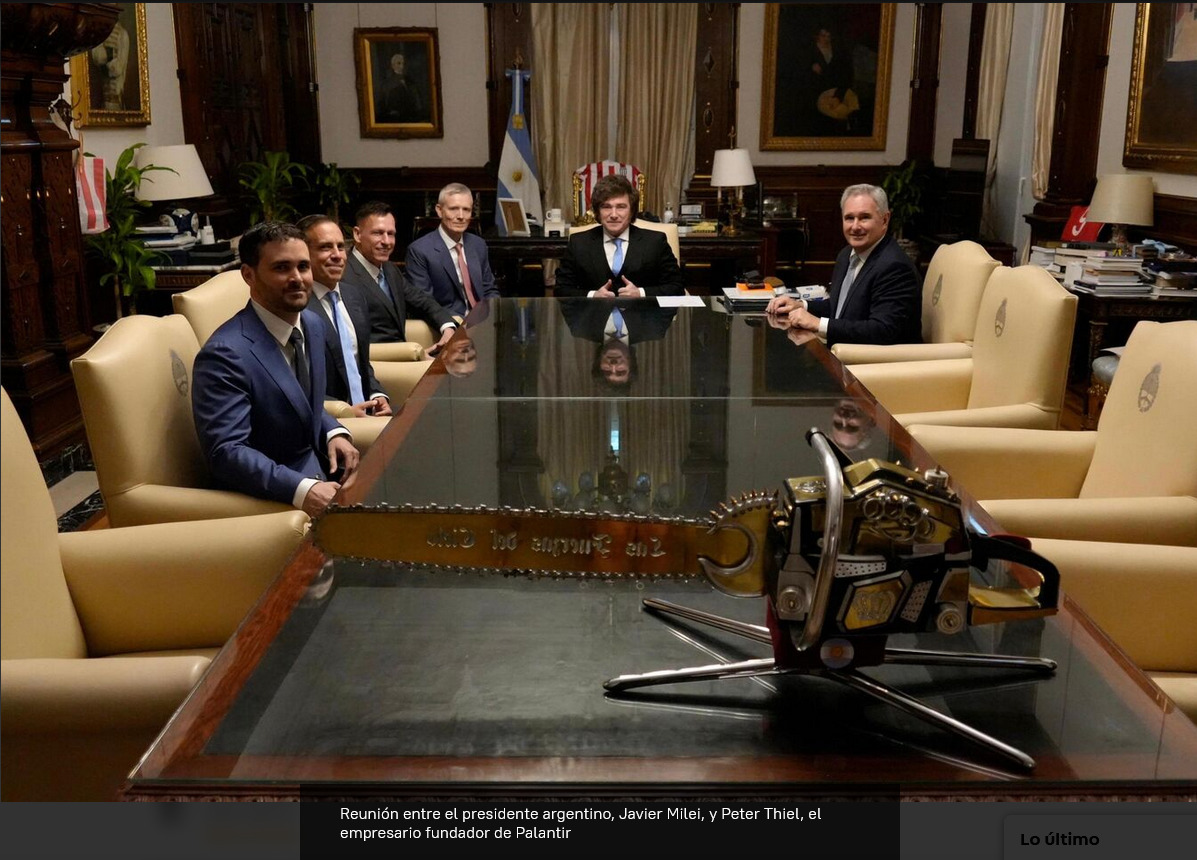 SPUTNIK BUENOS AIRES, Argentina.- El presidente argentino, Javier Milei, recibió al empresario fundador de Palantir en la Casa Rosada, en la tercera visita al país del magnate desde que asumió…